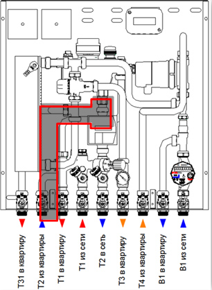 | ![]() Рис. 8. Схема движения теплоносителя в станции VALTEC Control SAT HR