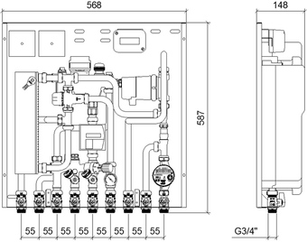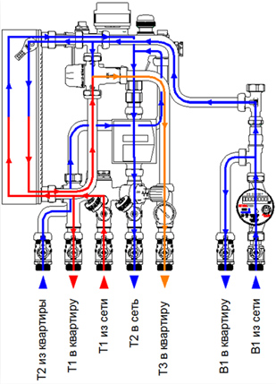 | ![]() Рис. 6. Квартирная станция VALTEC Control SAT HR с ГВС без смешения