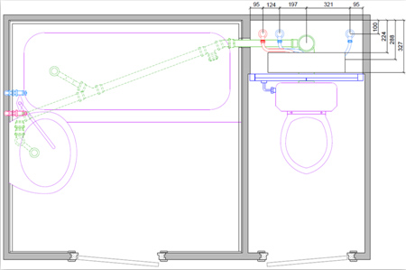 Рис. 16. Размещение квартирной станции в сантехкабине (вид сверху)