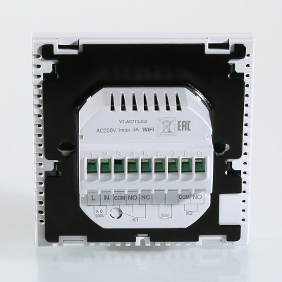 - управление исполнительными устройствами посредством двух электромагнитных реле: с нормально открытой (НО) / нормально закрытой (НЗ) группой контактов для первого контура отопления (встроенный датчик) и нормально открытого (НО) контакта для второго контура отопления (выносной датчик);