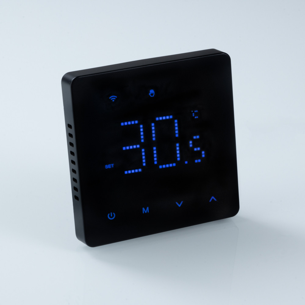 Комнатный WIFI-хронотермостат предназначен для подачи управляющего сигнала (включить/выключить) на электрический теплый пол и исполнительные устройства водяного теплого пола или радиаторного отопления. Управление осуществляется в зависимости от температуры воздуха в помещении (встроенный датчик) и температуры пола (выносной датчик). Возможны недельное программирование и выбор режима работы – по датчику температуры воздуха или датчику температуры пола, а также совместный режим с двумя датчиками, при котором управление происходит по температуре воздуха, а выносной датчик служит как ограничитель от перегрева поверхности.