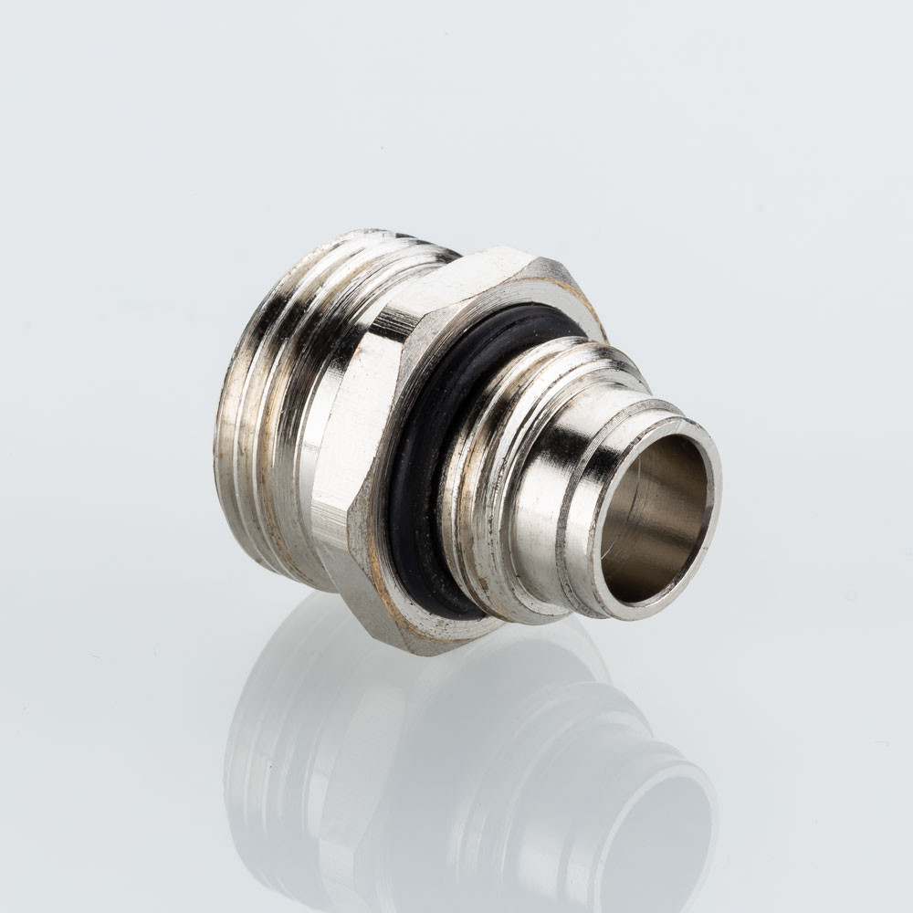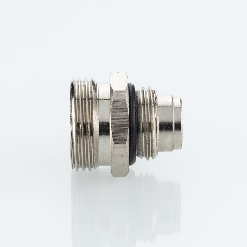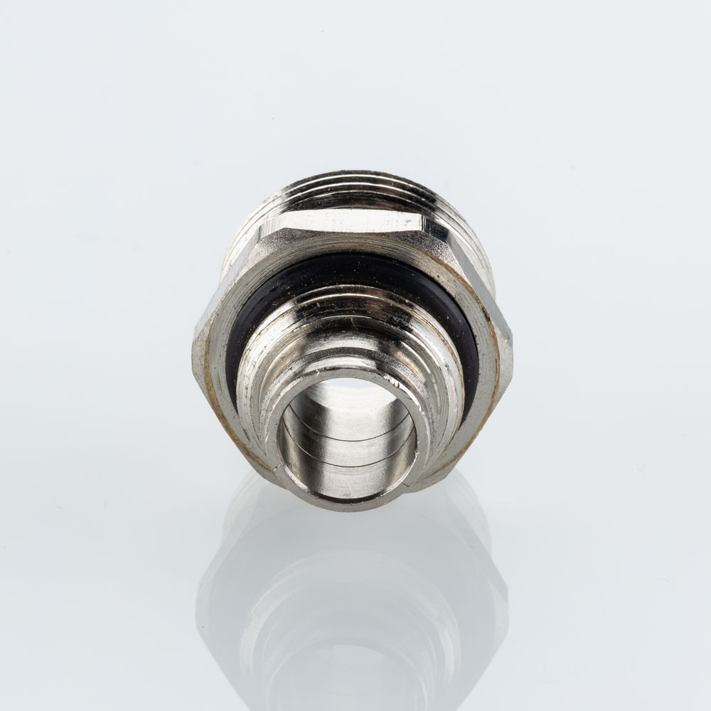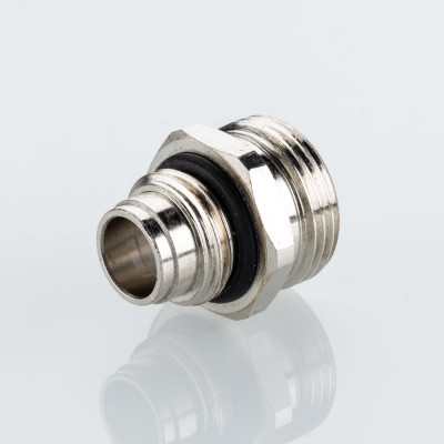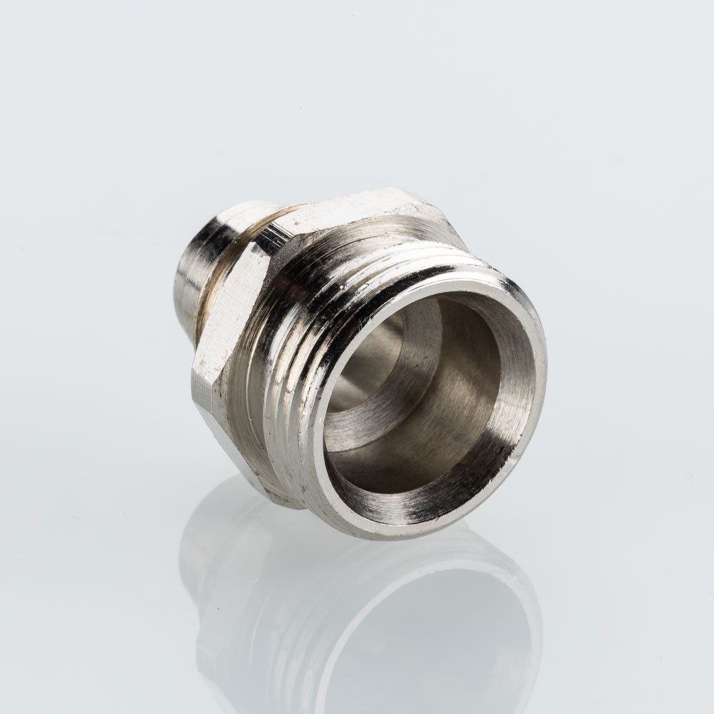 Латунный никелированный ниппель, предназначенный для применения совместно с расходомером VT.AC674.Z.0 на коллекторных блоках VTc.579.