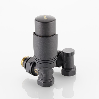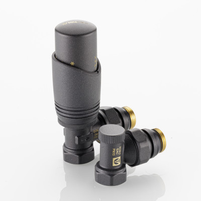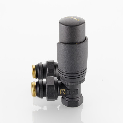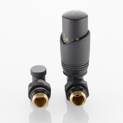Клапаны и термоголовка комплекта выполнены в сером цвете.