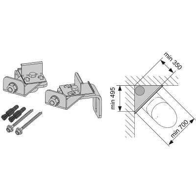 Комплект крепления модуля инсталляции в углу WALLBOX поставляется с двумя дюбелями с распорным элементом Termoclip-стена V2 10х80 GEO и двумя базовыми установочными элементами WB90103. Опционально можно докупить звукоизоляцию крепежных элементов WB90219 (в комплект поставки WB90317 не входит).