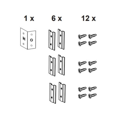 Число кронштейнов в комплекте – 6 шт., в комплект входят также шаблон для установки, саморезы для фиксации.