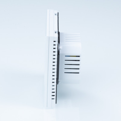 Комнатный WIFI-хронотермостат с цветным дисплеем предназначен для подачи управляющего сигнала (включить/выключить) на электрический теплый пол и исполнительные устройства водяного теплого пола или радиаторного отопления. Управление осуществляется в зависимости от температуры воздуха в помещении (встроенный датчик) и температуры пола (выносной датчик). Возможны недельное программирование и выбор режима работы – по датчику температуры воздуха или датчику температуры пола, а также совместный режим с двумя датчиками, при котором управление происходит по температуре воздуха, а выносной датчик служит как ограничитель от перегрева поверхности.
