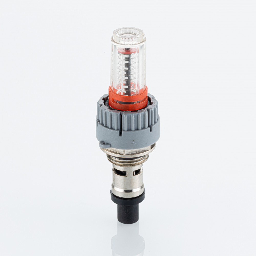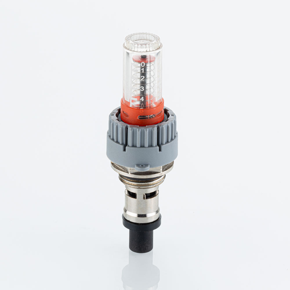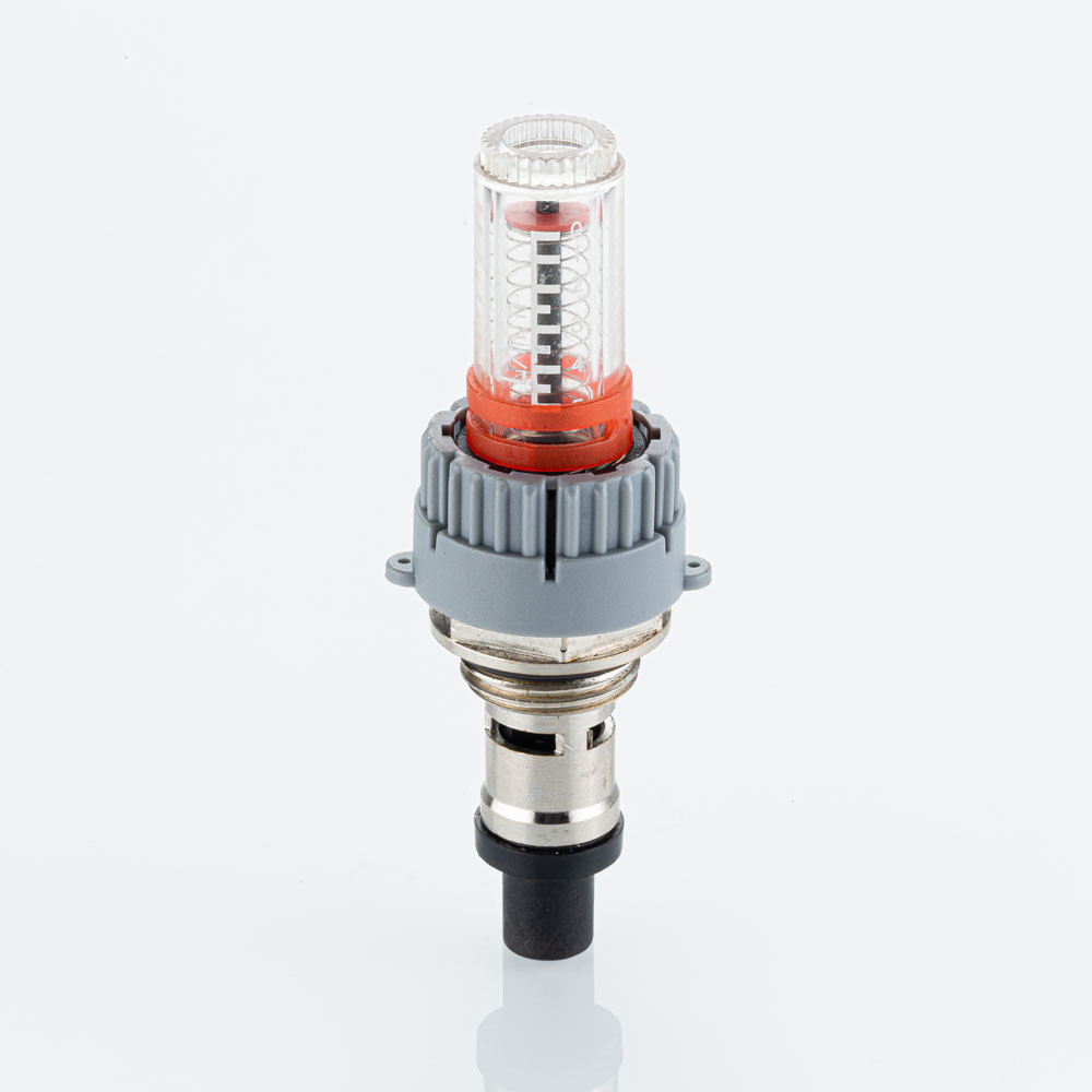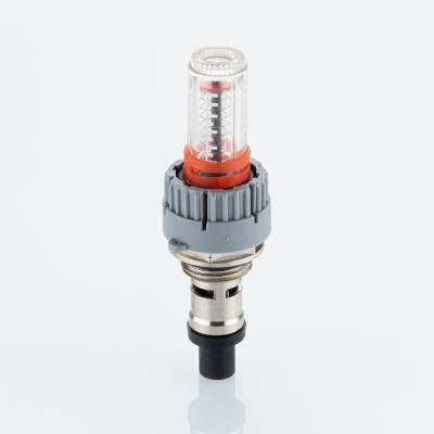 Настроечный клапан с расходомером (ротаметром) для коллекторных блоков VTc.579. Предназначен для индикации и регулировки расхода теплоносителя в присоединенных контурах напольного или радиаторного отопления при наладке (гидравлической балансировке) системы. Шкала прозрачной колбы отградуирована в диапазоне расхода от 0,5 до 5,0 л/мин. Текущее значение расхода определяется по положению индикаторной шайбы. Расходомер можно разобрать и прочистить при загрязнении.