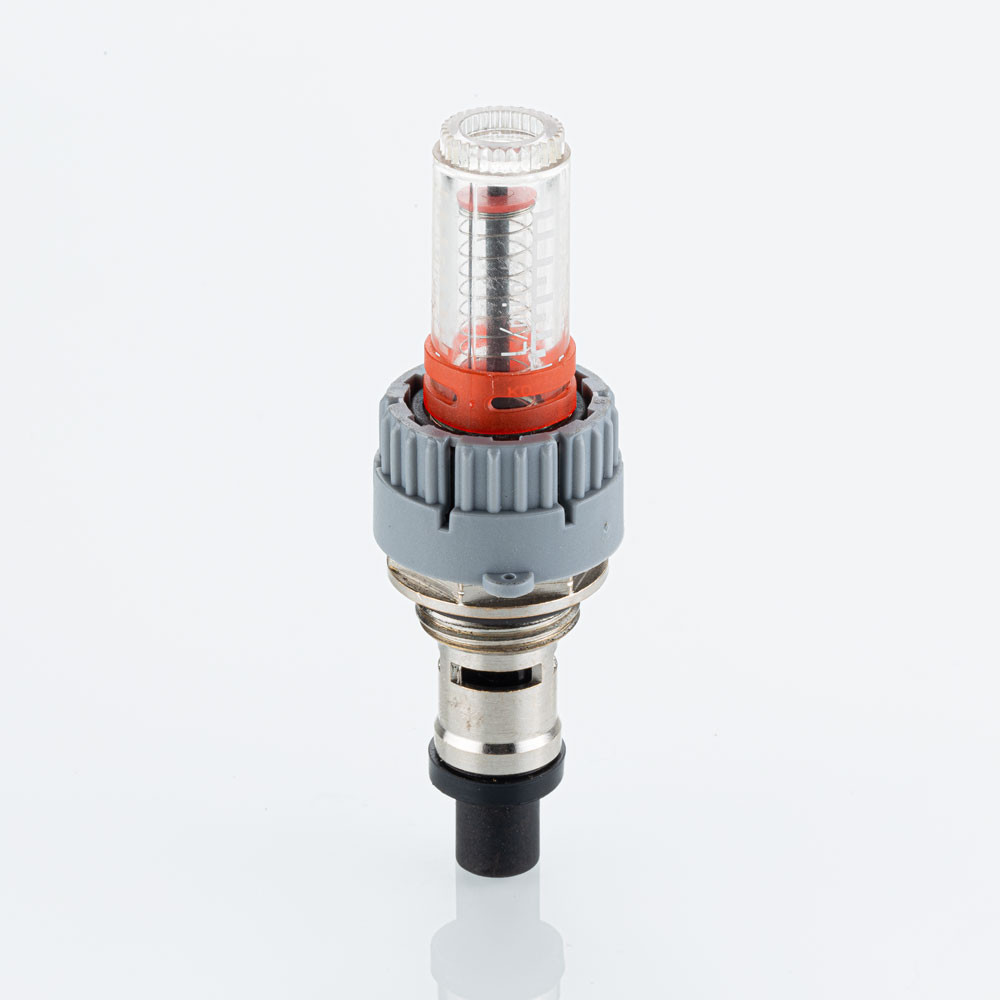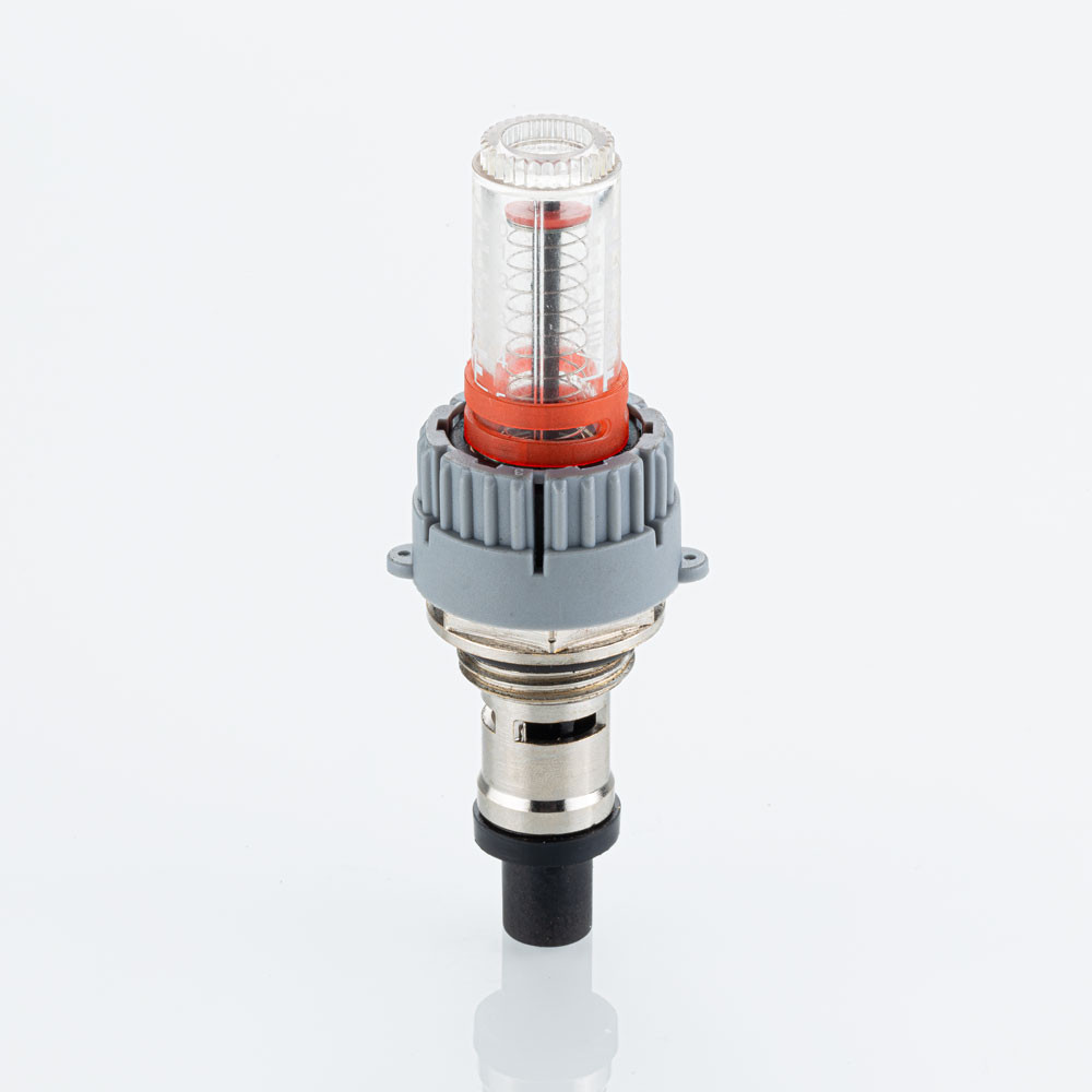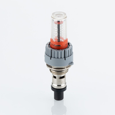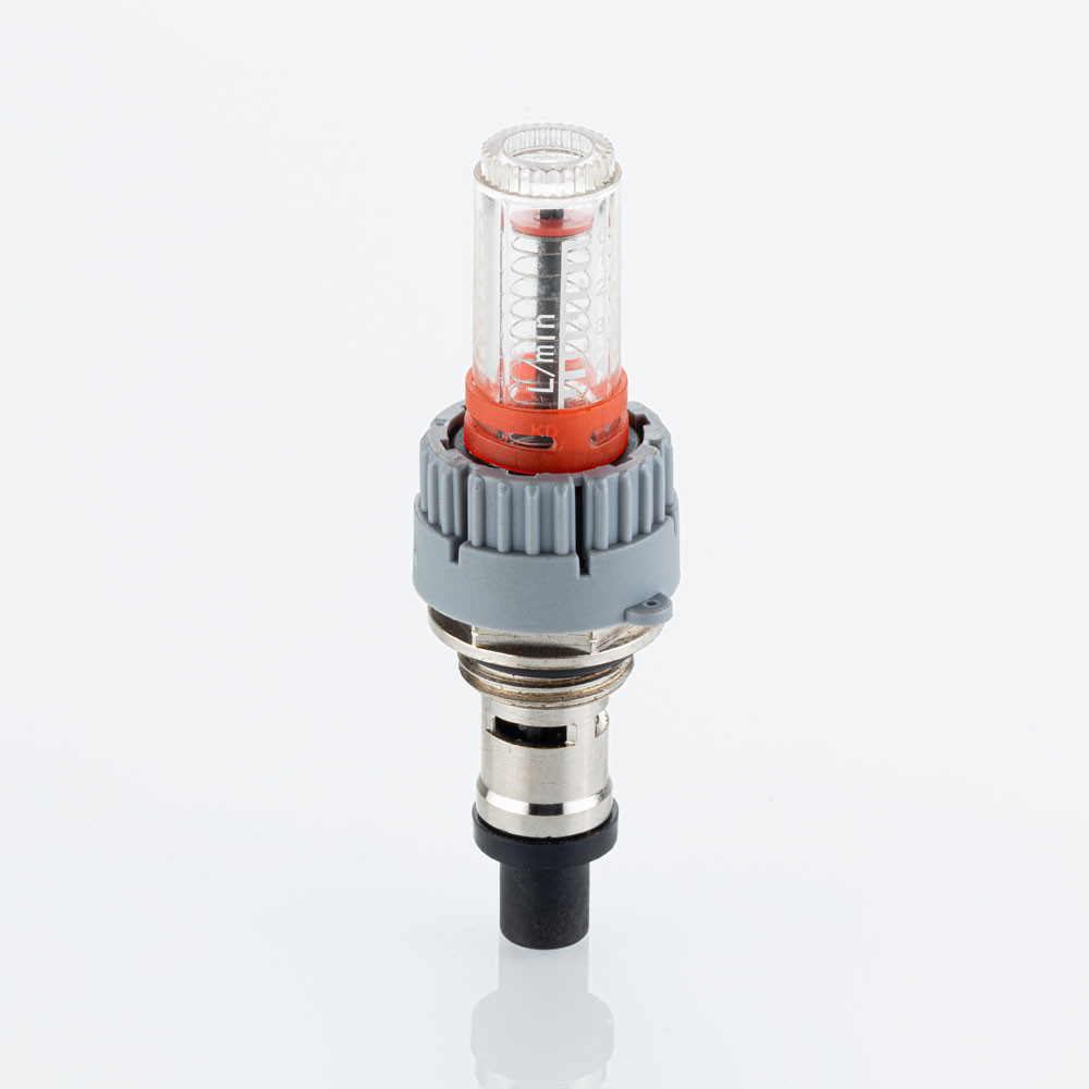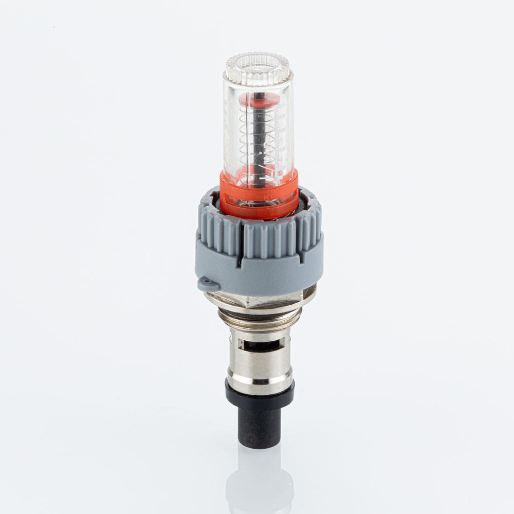 Настроечный клапан с расходомером (ротаметром) для коллекторных блоков VTc.579. Предназначен для индикации и регулировки расхода теплоносителя в присоединенных контурах напольного или радиаторного отопления при наладке (гидравлической балансировке) системы. Шкала прозрачной колбы отградуирована в диапазоне расхода от 0,5 до 5,0 л/мин. Текущее значение расхода определяется по положению индикаторной шайбы. Расходомер можно разобрать и прочистить при загрязнении.
