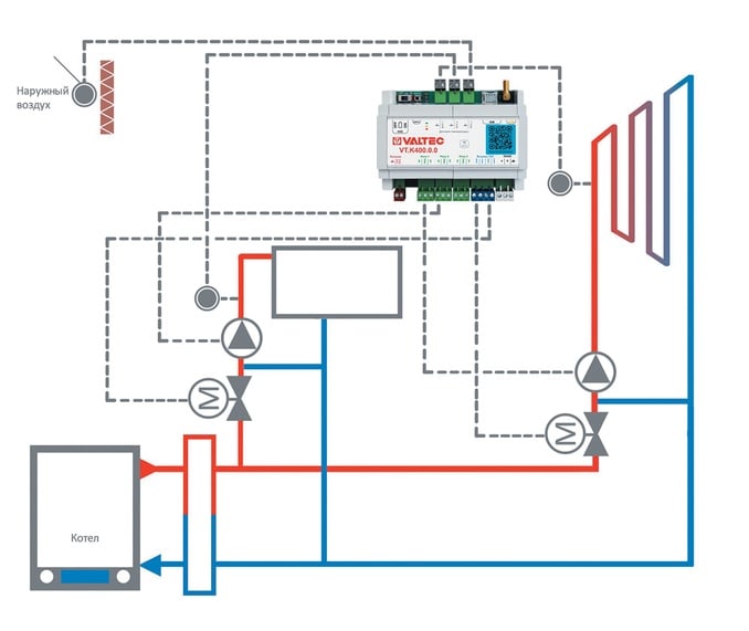 Данная комплектация рассчитана на совместную работу с универсальными контроллерами для смесительных узлов VT.K400 или VT.K500.