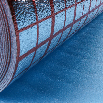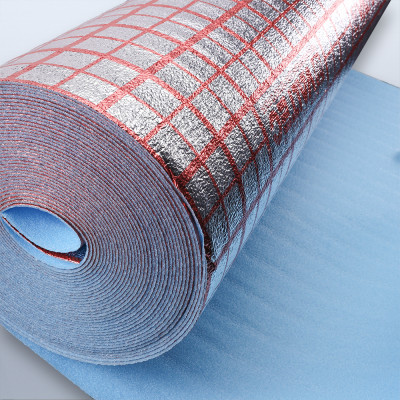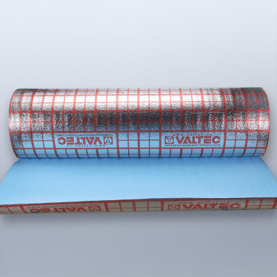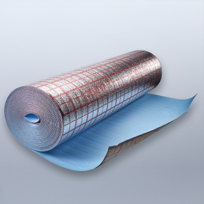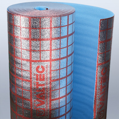 Комбинированный материал из вспененного полиэтилена с покрытием металлизированной пленкой и нанесенной разметкой. Эффективная тепло-, звукоизоляция, снижающая тепловые потери и обеспечивающая снижение ударного шума через перекрытие.