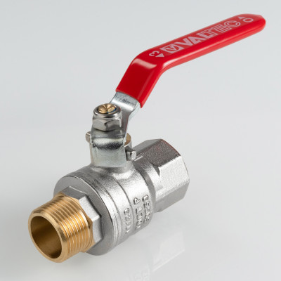 Полнопроходной шаровой кран VT.415.N серии «ГОСТ» имеет внутреннюю–наружную резьбу и оснащен стальной оцинкованной рукояткой рычажного (флажкового) типа с покрытием из ПВХ.