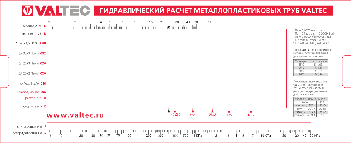 Линейка предназначена для оперативного прикидочного гидравлического расчета металлопластиковых трубопроводов.