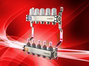 Новинка представляет собой коллекторный блок из нержавеющей стали с регулирующими клапанами и расходомерами, особенностью которого является отсутствие на обоих коллекторах сервисной группы (она включает в себя воздухоотводчик и дренажный кран).