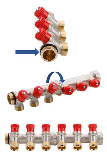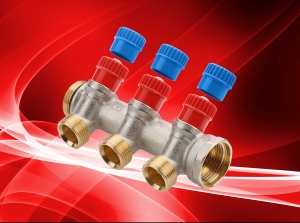 Напоминаем, что диаметр данного коллектора – 1”, диаметр отводов – 3/4" («евроконус»). В комплект входят ручки клапанов синего и красного цвета. Коллекторы изготавливаются в Италии.