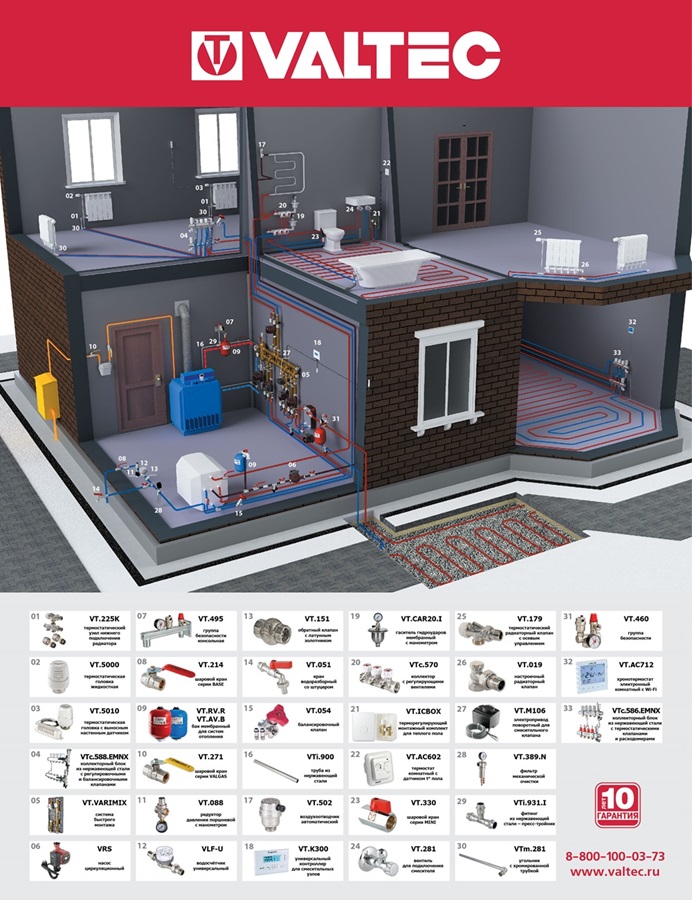 Новые рельефные панно со схемами демонстрируют комплексные решения инженерной сантехники VALTEC: отопление для квартиры, водоснабжение для квартиры, а также отопление и водоснабжение для частного дома. Рекомендуем в магазине размещать панно всех четырех видов.