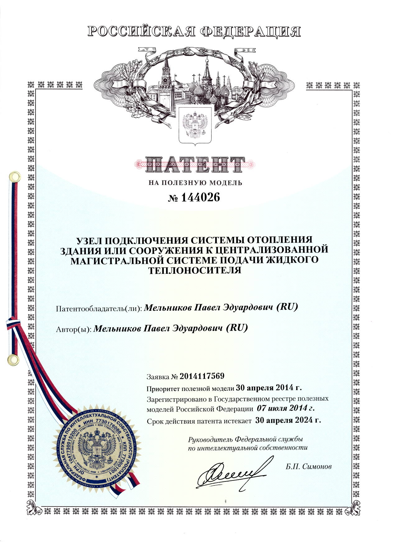 Патент № 144026. Автор: Мельников Павел Эдуардович.