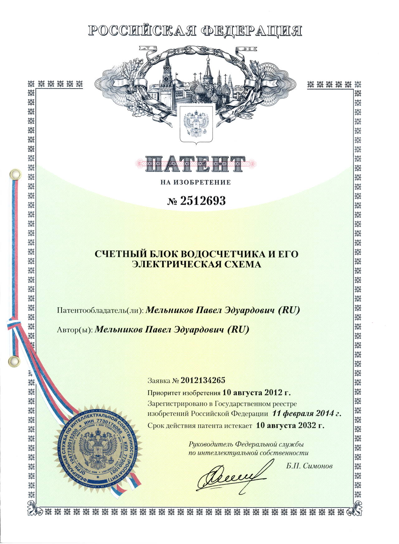 Патент № 2512693. Автор: Мельников Павел Эдуардович.